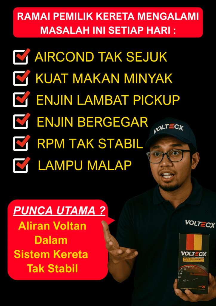 Voltecx ialah alat penstabil elektrik plug & play untuk kereta yang membantu menjimatkan minyak, meningkatkan prestasi enjin, dan memastikan sistem elektrik kenderaan lebih stabil.